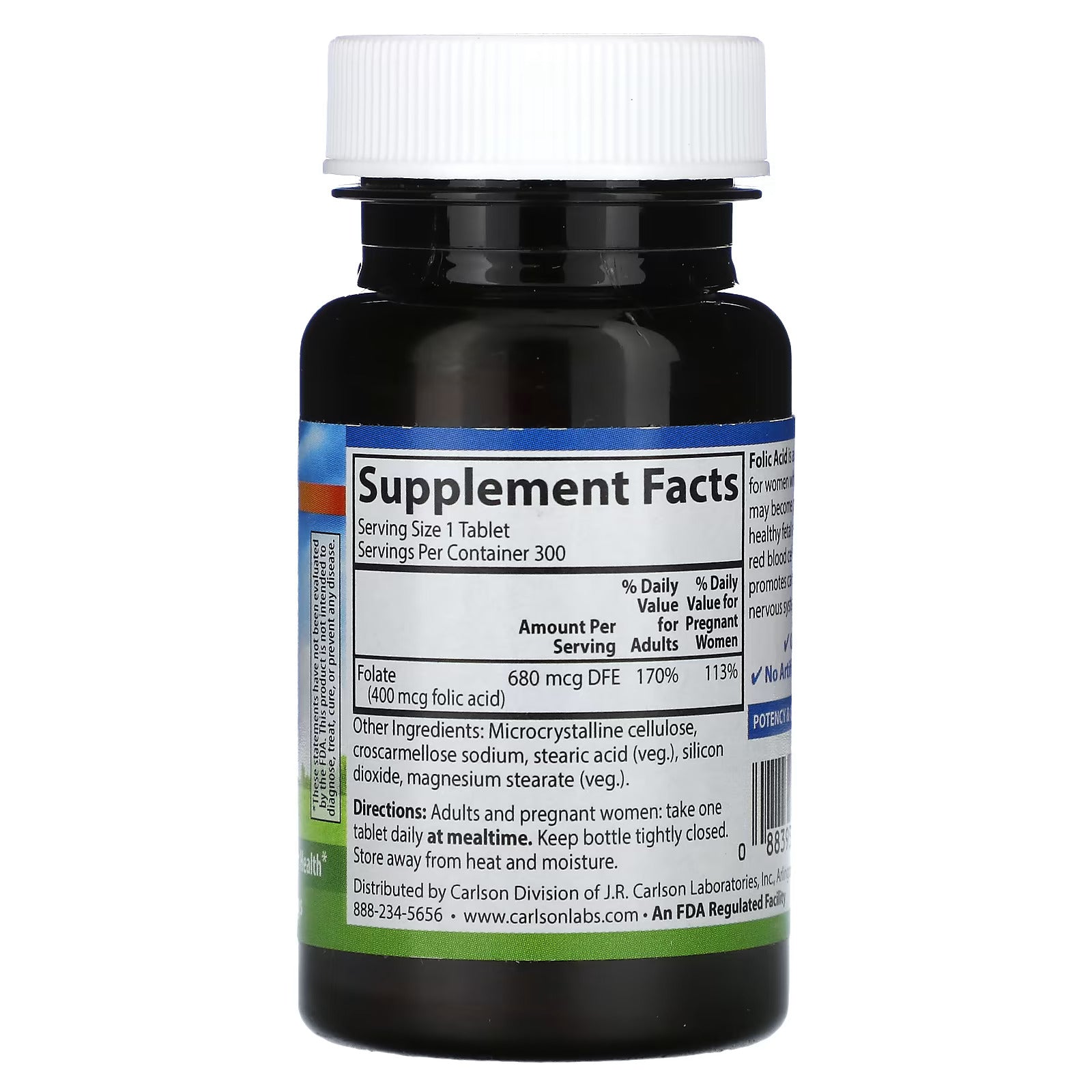 Carlson, Ácido Fólico, 400 mcg, 300 Comprimidos Vegetarianos