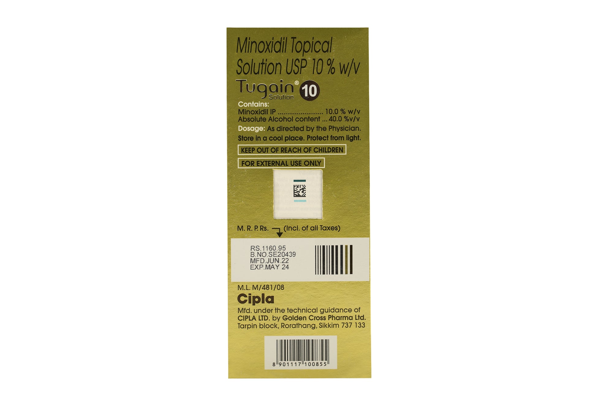 Tugain, Minoxidil 10%, 60ml, com spray e conta gotas